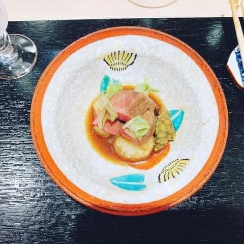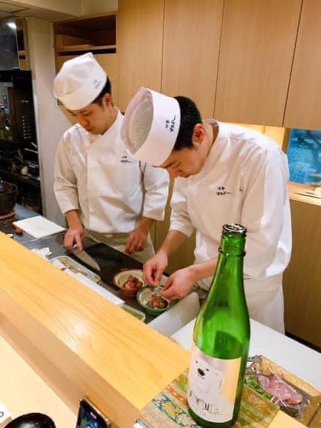 Mình đến nhà hàng hơi trễ một chút do lạc đường. May mắn thay anh đầu bếp trưởng Yuuki dễ thương vẫn kiên nhẫn đợi kèm nụ cười vui vẻ đón chào khi chúng mình tới. Anh là thế hệ thứ 2, con của một người master chef về bữa ăn Kaiseki tại Nhật Bản và gia đình tự nuôi trồng các loại thực phẩm ờ một trang trại xanh sạch, cung cấp cho bữa ăn Kaiseki của nhà hàng. Nhà hàng bé tí, nằm yên tĩnh trên lầu 3 của căn nhà ( hay chung cư) gì đó. Nó bé và mộc mạc đến nỗi mình cứ tưởng đến nhà một người bạn nào đó ăn tối chứ không phải đang đến ăn tại một nhà hàng được chấm điểm tuyệt đối 5 sao trên Tripadvisor và nhận được hàng ngàn lời khen tuyệt vời. Từng món ăn được dọn ra đi kèm với 1 loại rượu sake riêng biệt thích hợp với từng món ăn. Tất cả các món nhìn rất đơn giản nhưng chỉ cần ăn vào 1 miếng đầu tiên là bạn có thể kinh ngạc về độ tươi, độ ngọt, độ dòn, mùi hương, các hương vị hoà quyện với nhau đầy tinh tế nhẹ nhàng nhưng vị lại rất tròn và các tầng layer hương vị rất đặc biệt không thể lẫn vào đâu được. Ví dụ như chén soup nhìn cực kì đơn giản với nguyên liệu chỉ có rong biển và măng, nhưng chỉ cần húp muỗng soup đầu tiên, cắn miếng măng giòn sần sật mà ngọt lịm ngập chân răng, cái mùi vị của một loại rau rừng gì đó rất lạ kì cứ lôi cuốn mãi đến giọt cuối cùng.
