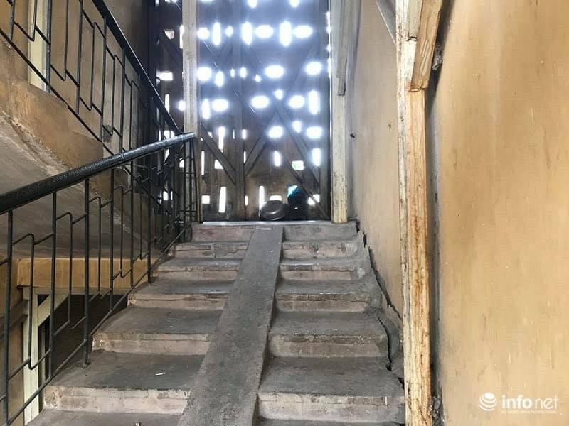 Cao ốc này buổi tối không mở đèn, thứ ánh sáng duy nhất là những đèn xe chạy ngang hắt lại và ngọn đèn đường vàng nhạt hiu hắt trên đầu. Tiếng anh trầm đục trong đêm: